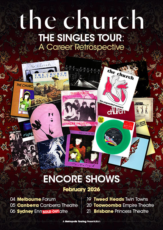 The Singles Tour will be the first time ever The Church have played a show in this unique format celebrating their rare guitar brilliance and song writing invention. The tour will see them play 20 of their Classic Singles spanning their career including Under The Milky Way, Reptile, The Unguarded Moment, Tear it All Away, When You Were Mine, Almost With You, Electric Lash, It’s No Reason, Already Yesterday, Columbus, Tantalized, Metropolis, The Hypnogogue, Ripple and many others. With their distinctive sound blending psyche rock, atmospheric melodies, and soul-stirring lyrics, The Church promises a performance that will delight both longtime fans and recent converts.