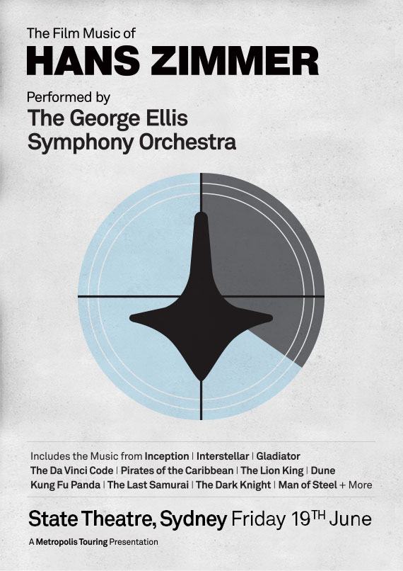 The Film Music of Hans Zimmer performed by The George Ellis Symphony OrchestraTour PosterEvent Dates and locationsBook TicketJun19 Sydney State Theatre